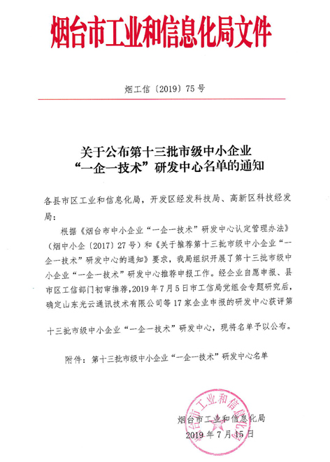 "One enterprise, one technology" innovation enterprises refer to those enterprises that can significantly improve the appearance, performance, quality, life, energy saving, environmental protection, safety and other indicators of existing products, increase market share and economic benefits, and possess proprietary technology and technological secrets in technology or process control. "One enterprise, one technology" R&D center is a technology R&D institution established mainly by small and medium-sized enterprises. It can create and master some core technologies in many professional fields and manufacturing and processing technologies, and is at the forefront of the industry, with prominent competitive advantages.